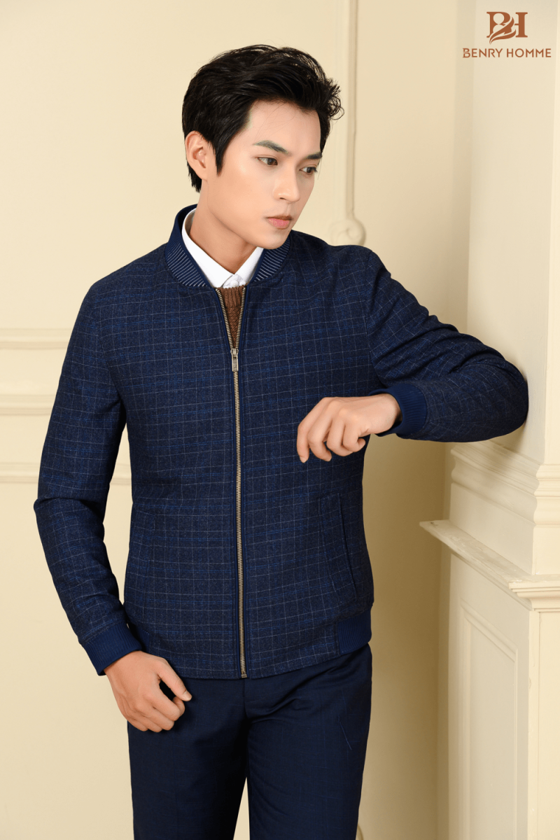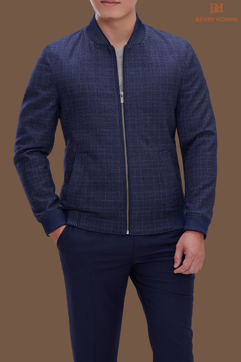 Áo khoác bomber nam kẻ Caro màu navy, mã áo JK18141NV