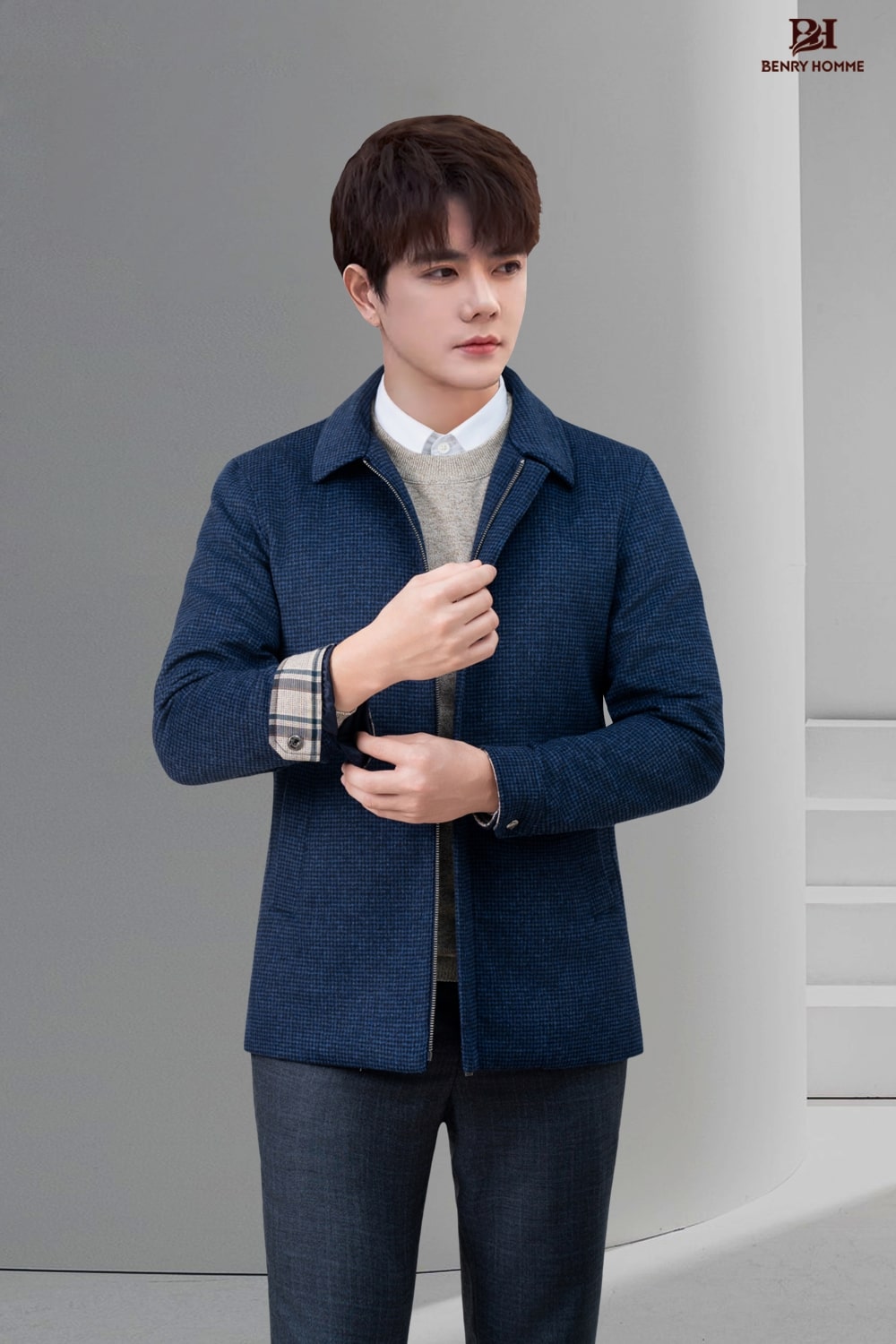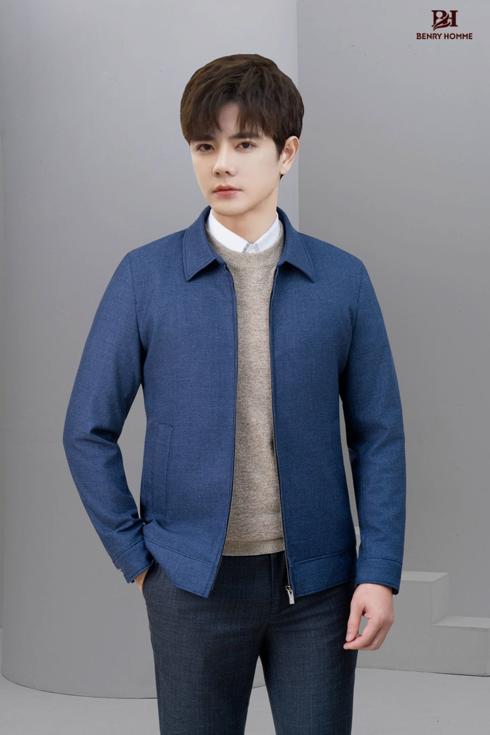 Áo khoác nam dạ lông cừu màu xanh NAVY, mã áo JK18172NVY