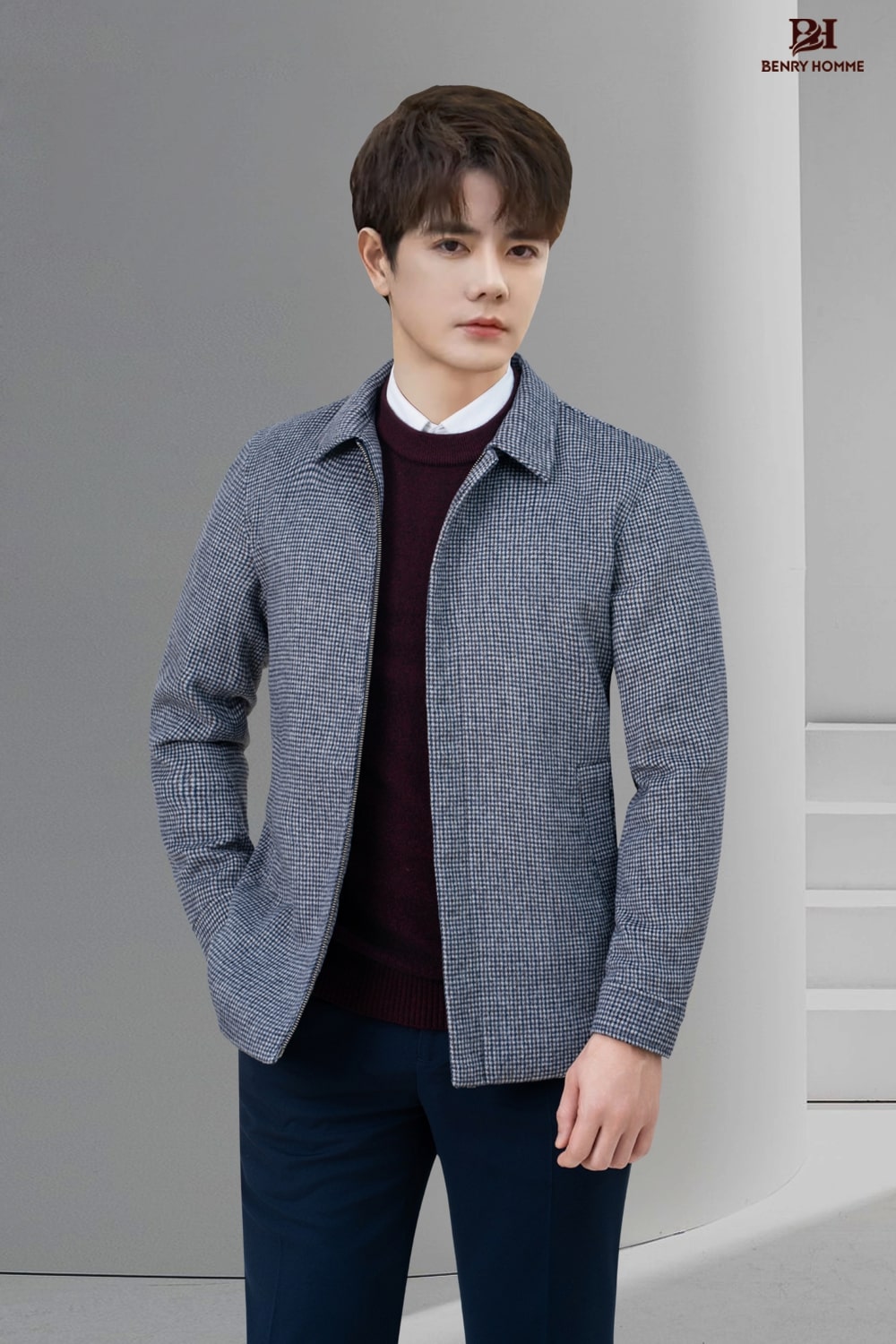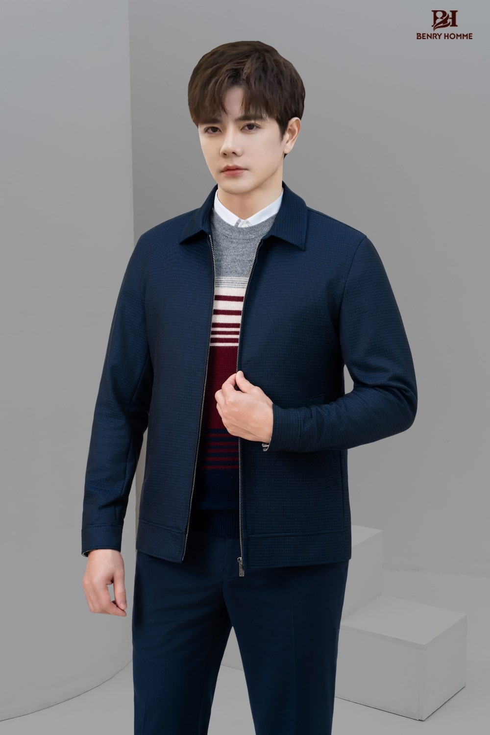 Áo khoác nam màu xanh than họa tiết nhỏ, mã áo JK18179DNV