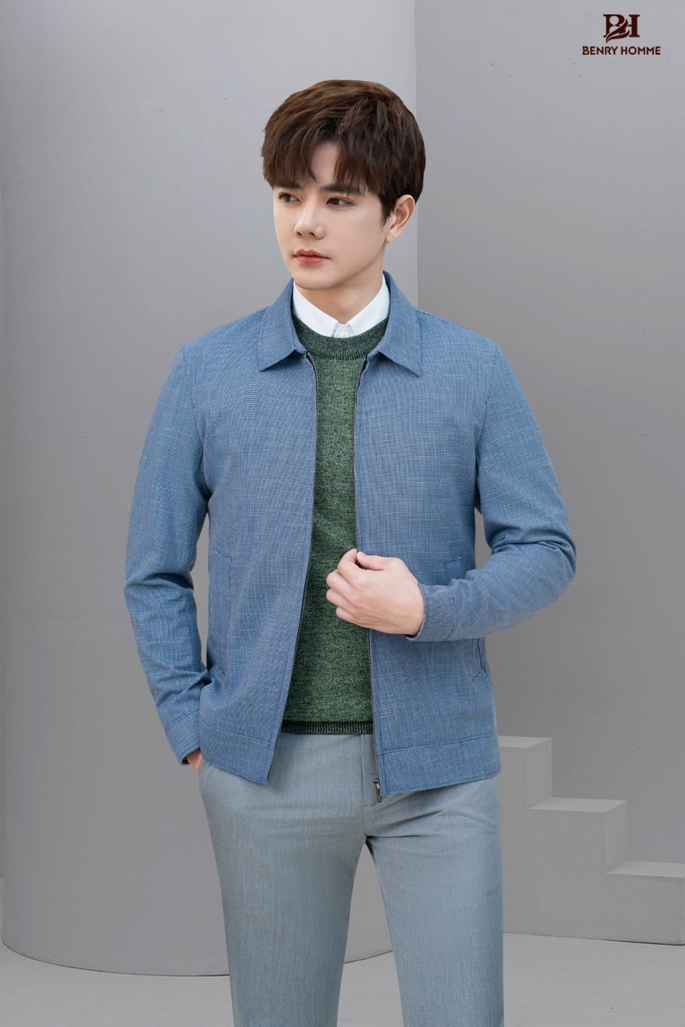 Áo khoác nam màu xanh ghi, mã áo JK18175BLU