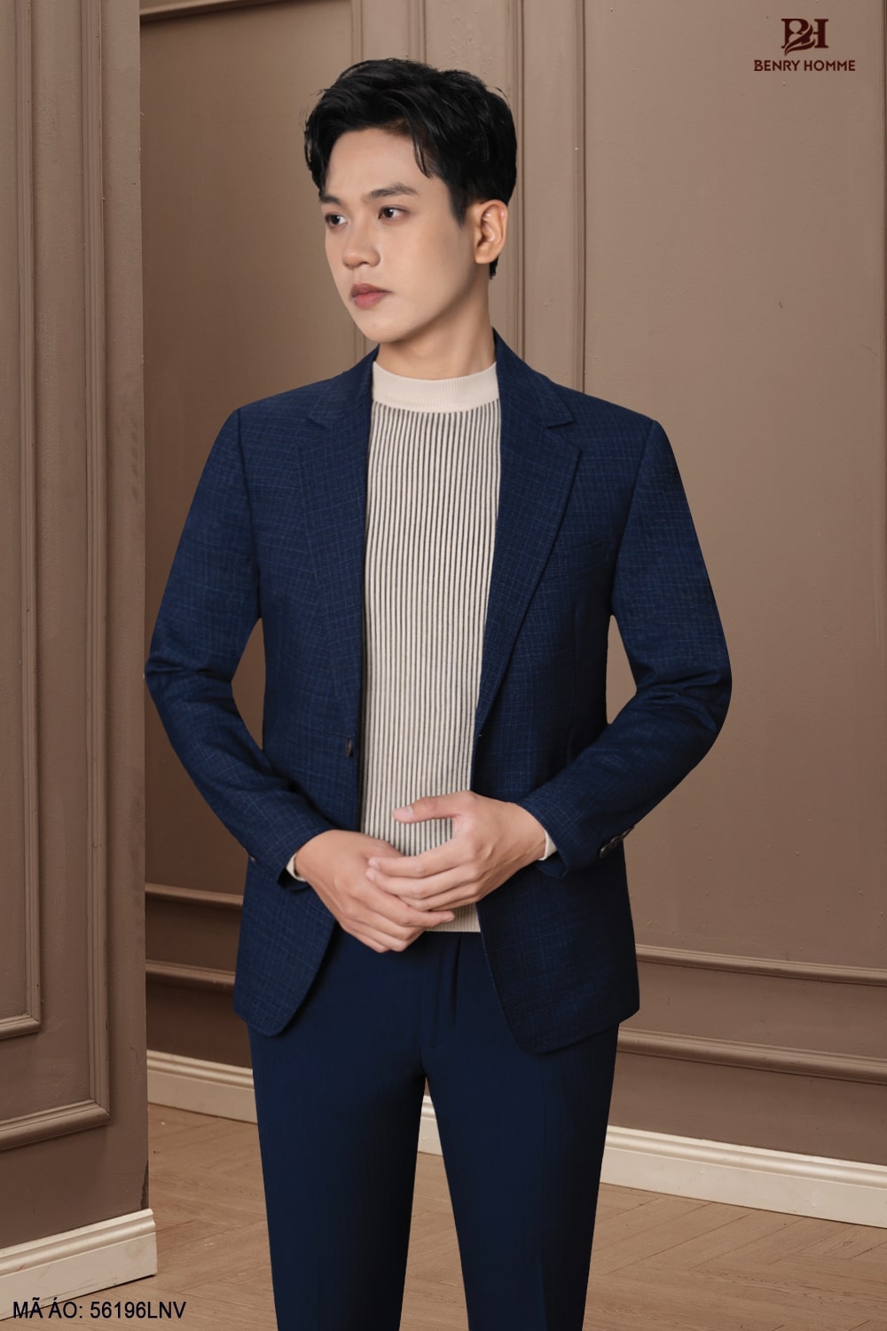 Áo blazer nam, màu xanh ghi, mã áo 56196LNV