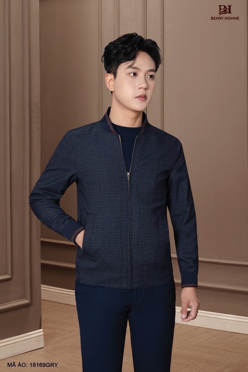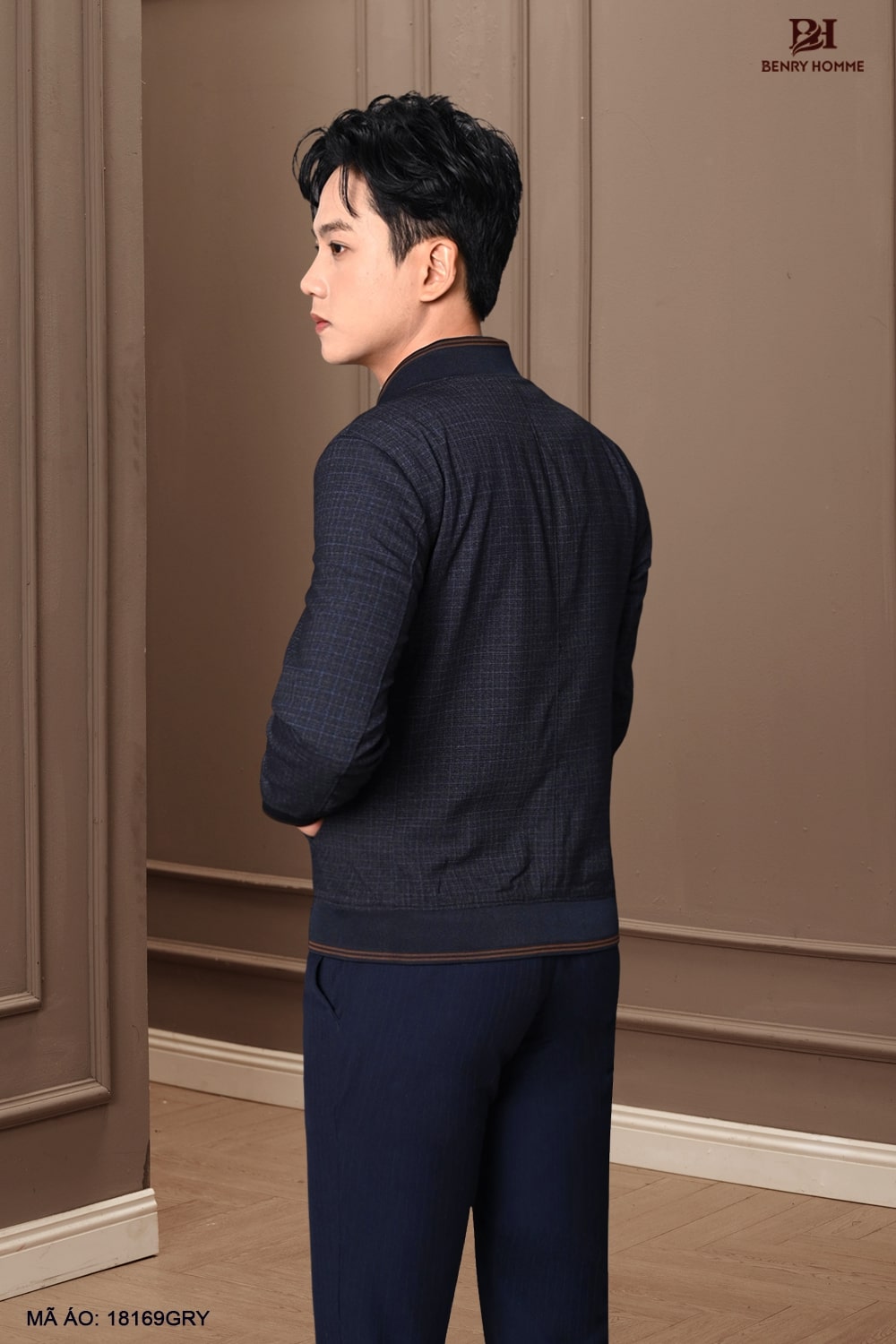 Áo bomber nam cổ bo phối viền nâu sang trọng, mã áo JK18169GRY