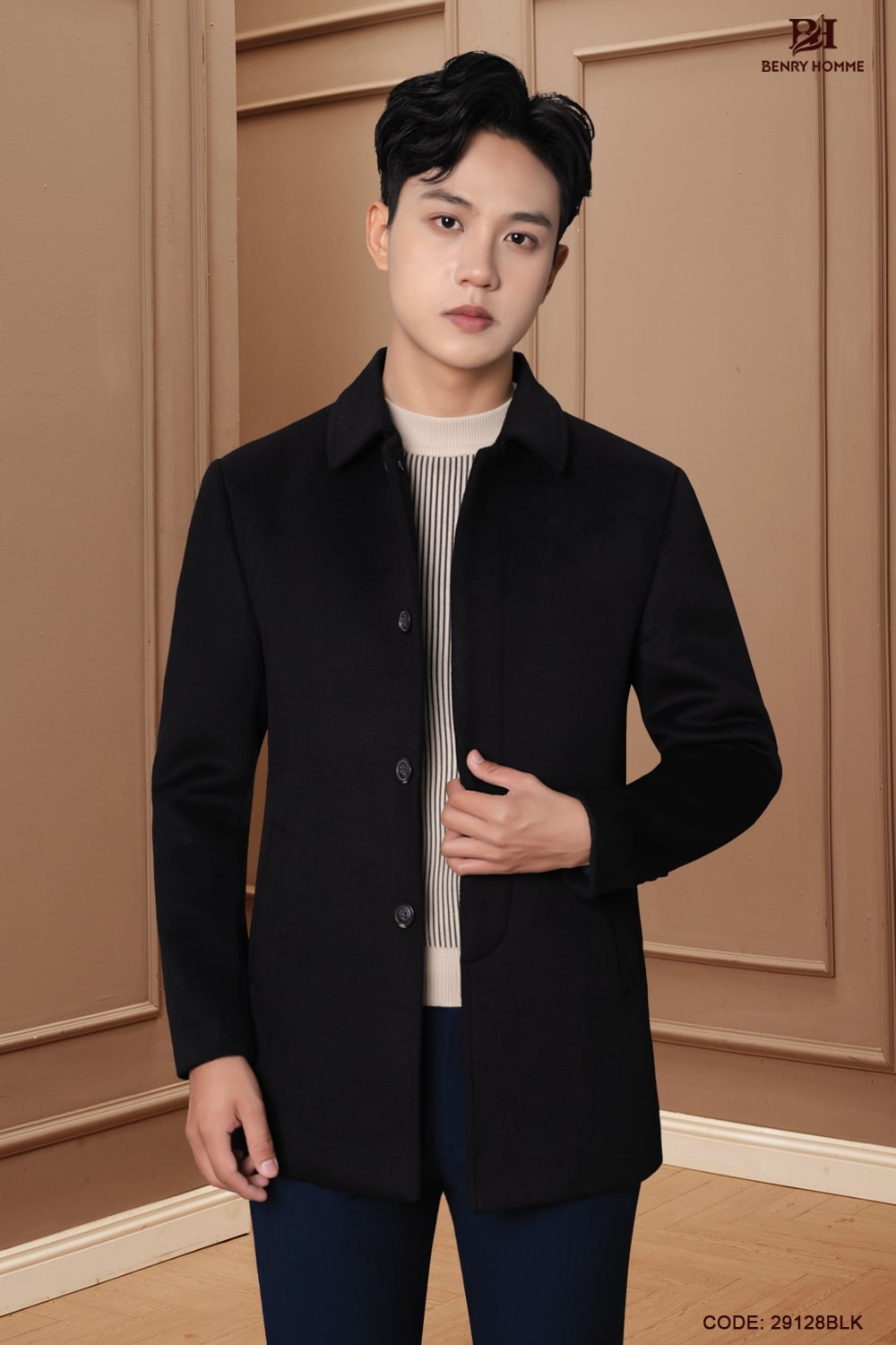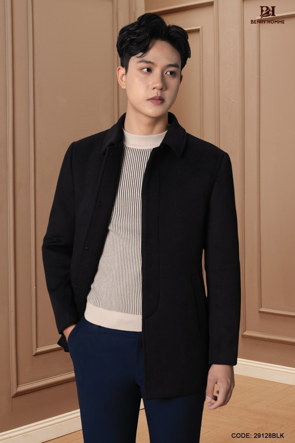 Áo dạ nam cao cấp màu đen, chất liệu dạ cashmere, mã áo 29128BLK