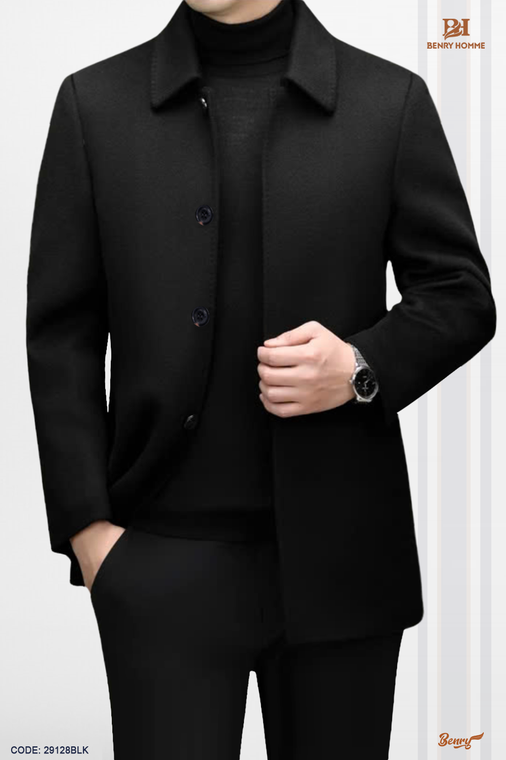 Áo dạ nam chất liệu dạ lông cừu màu đen, mã áo TC29138BLK