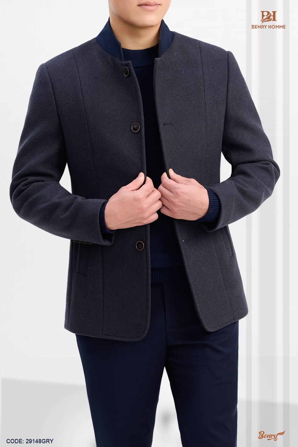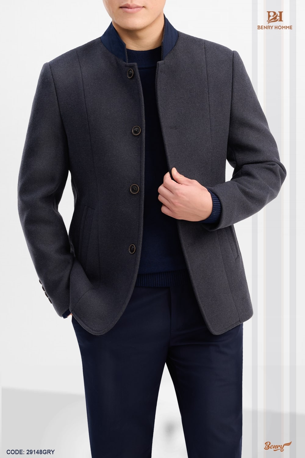 Áo dạ nam cổ bomber màu ghi xám, mã áo TC29148GRY