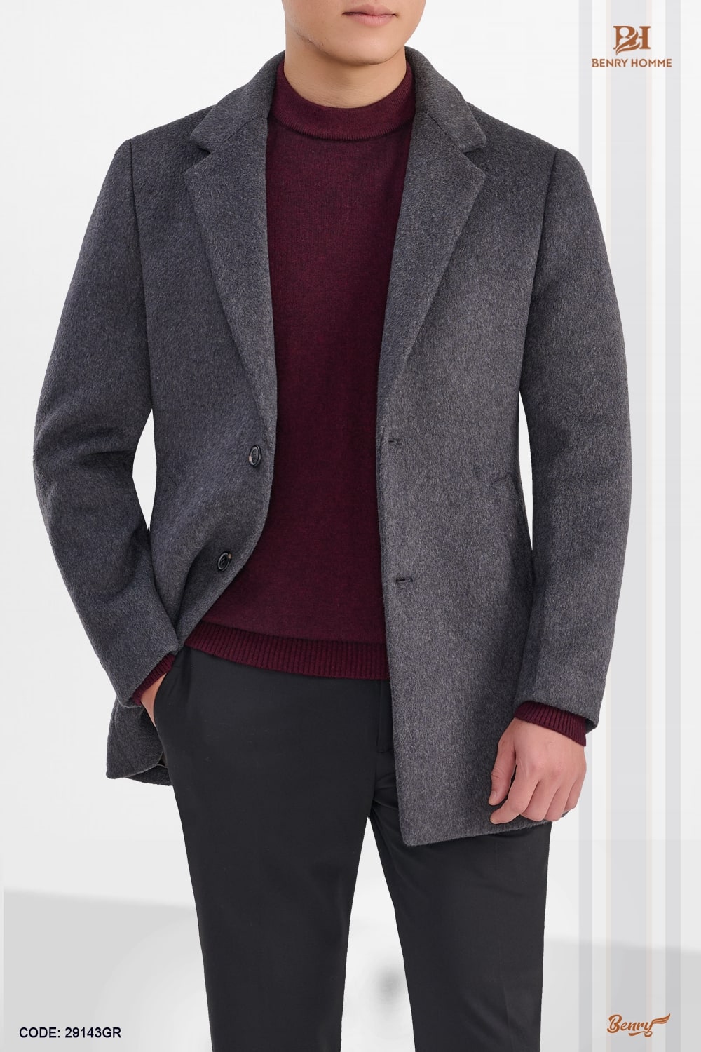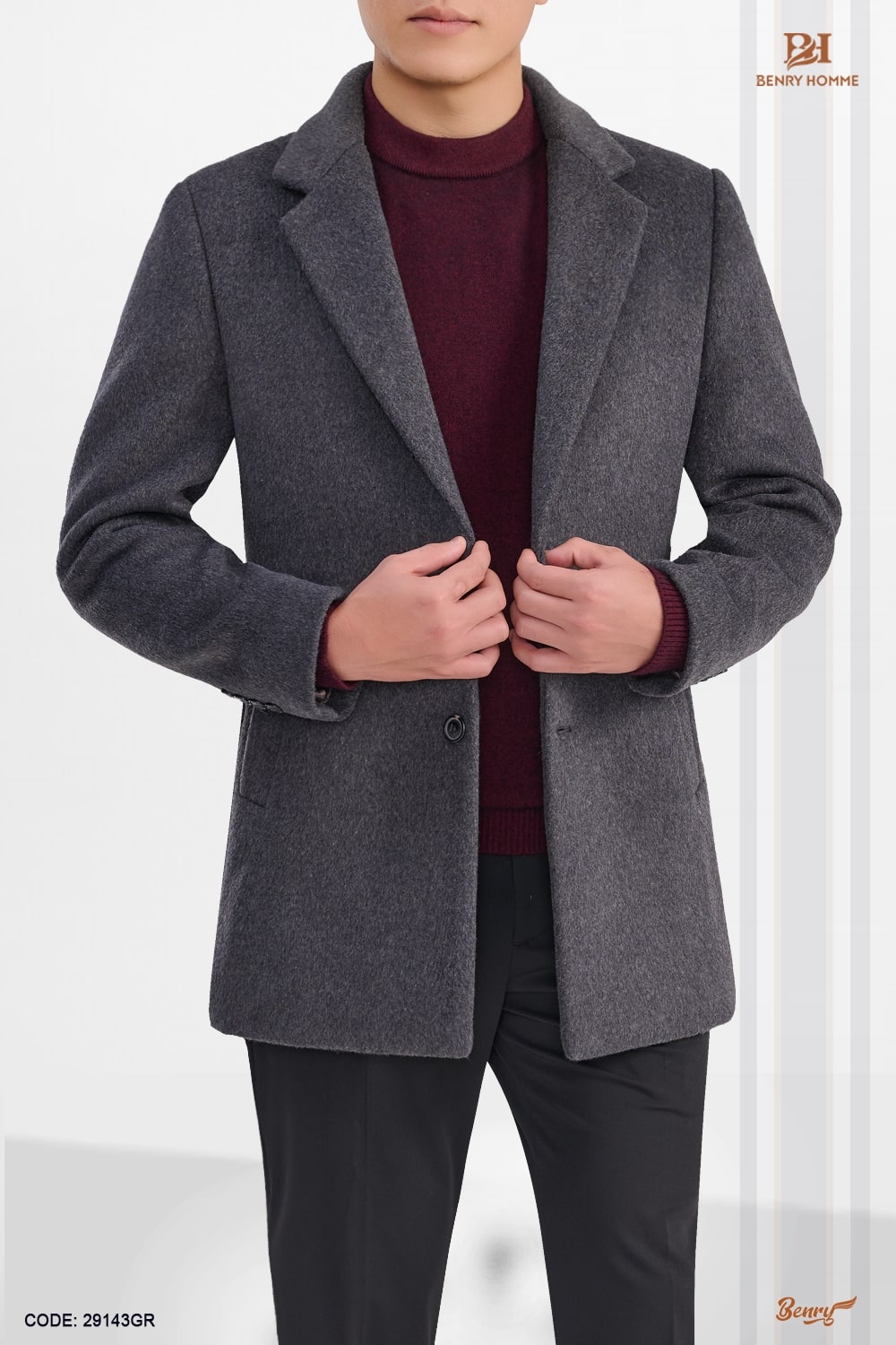 Áo dạ nam cổ vest dáng lửng màu ghi xám, Mã áo TC29143GRY