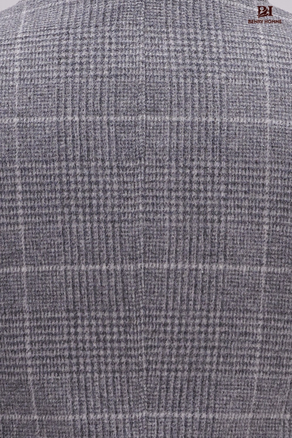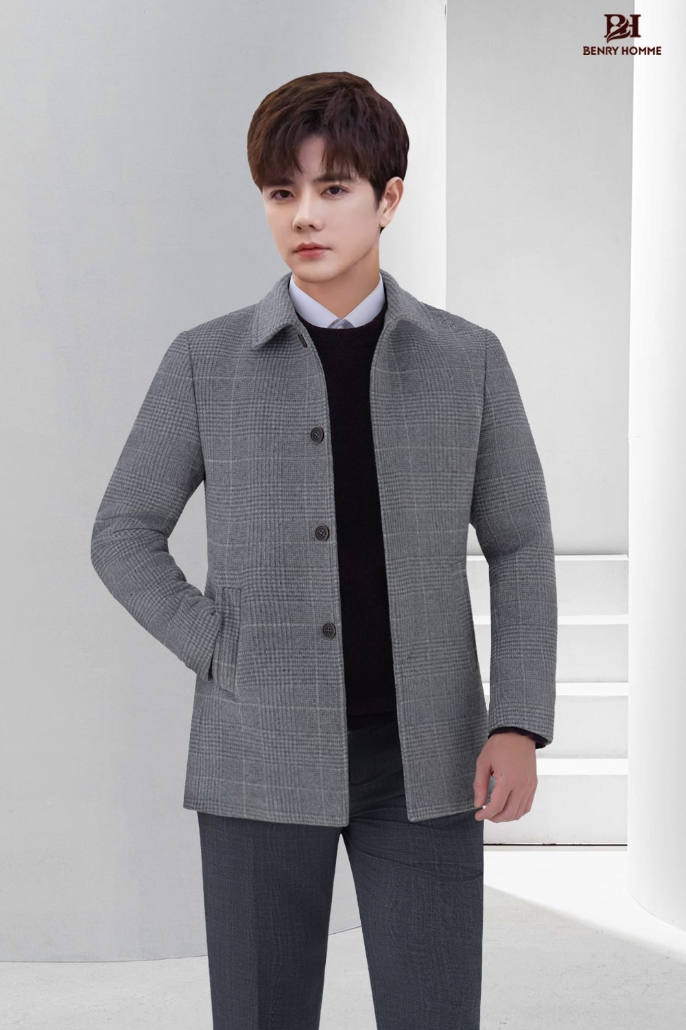 Áo dạ nam dáng ngắn màu ghi sáng, dạ WOOL & CASHMERE, mã áo TC29115LGR