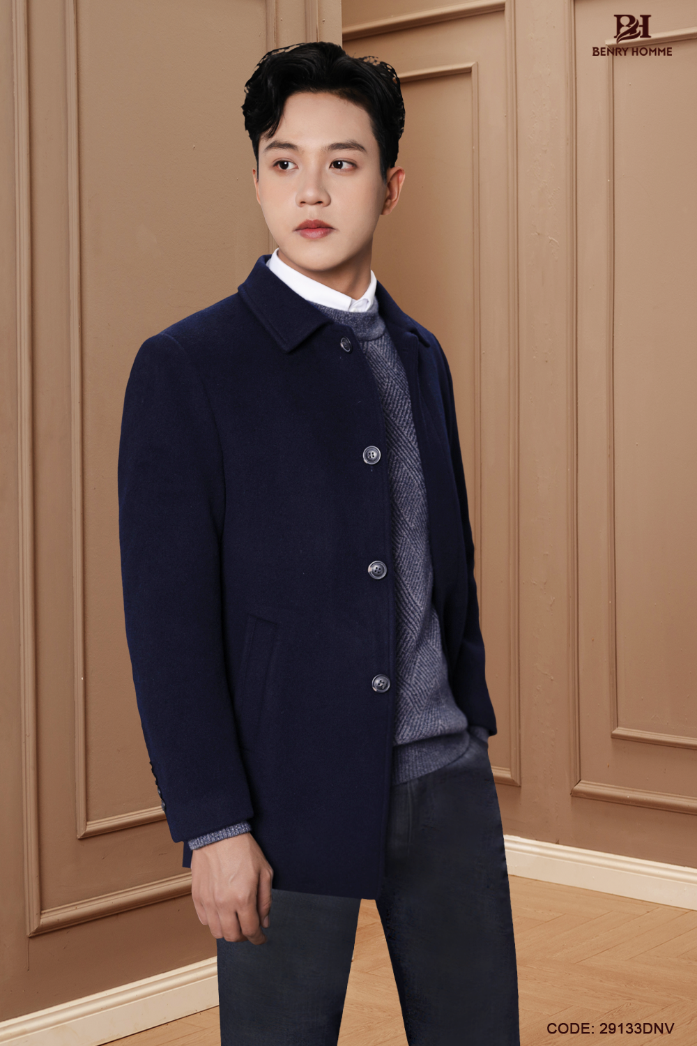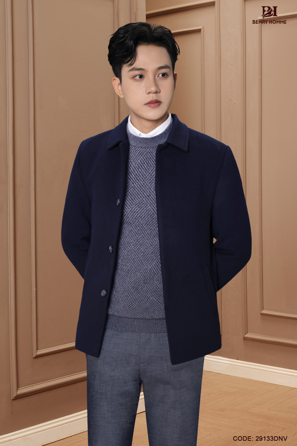 Áo dạ nam dáng ngắn, màu xanh than, chất liệu dạ cashmere, mã áo 29133DNV