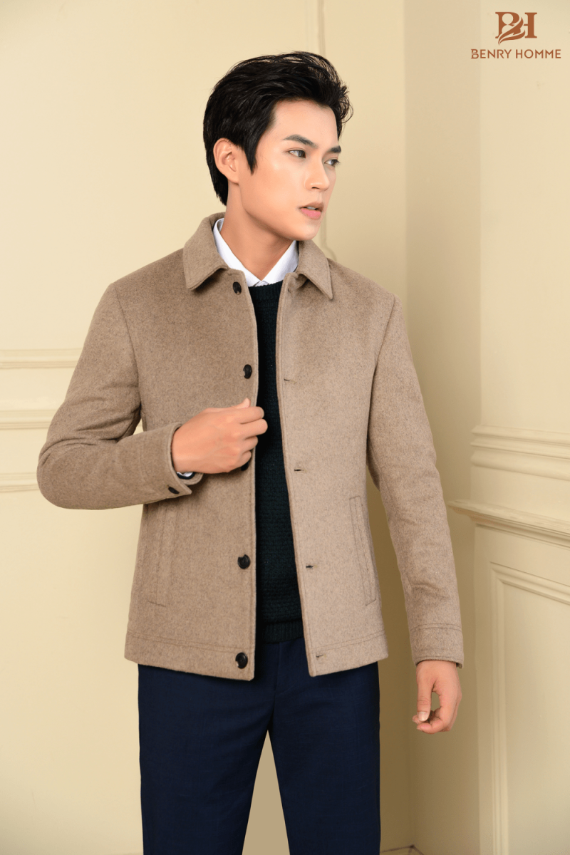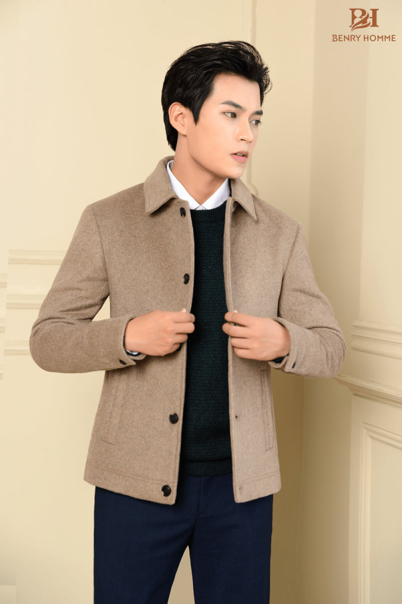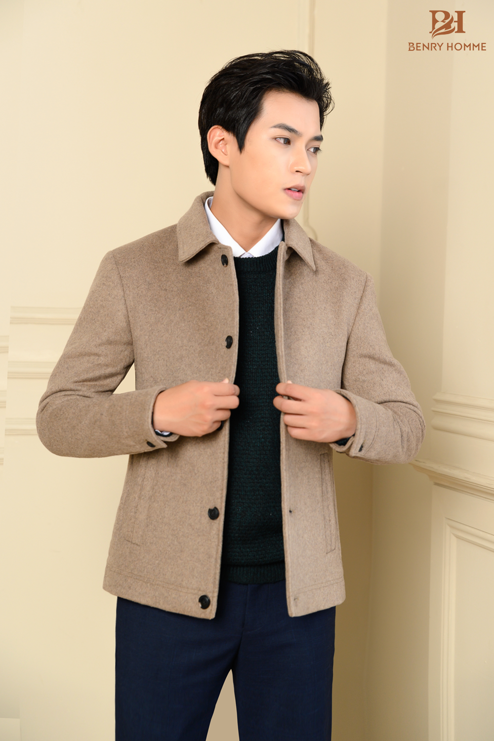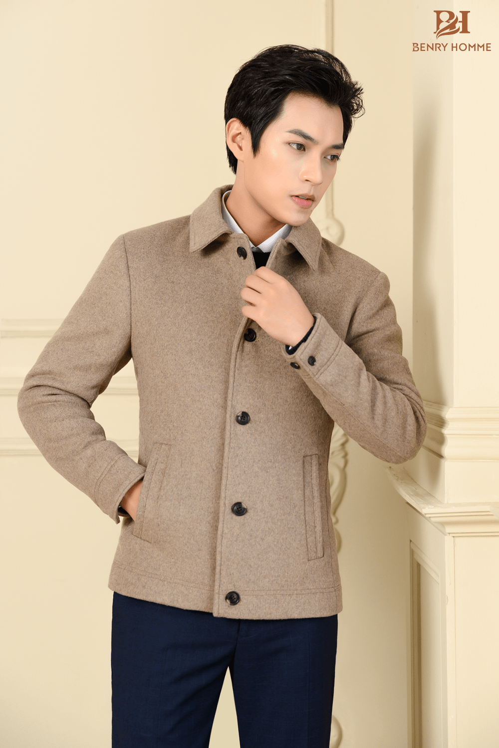 Áo khoác dạ lông cừu màu be, mã áo JK18134BE