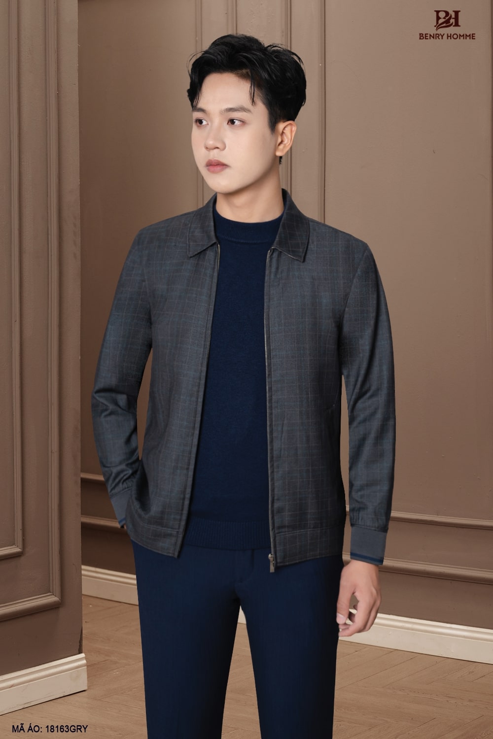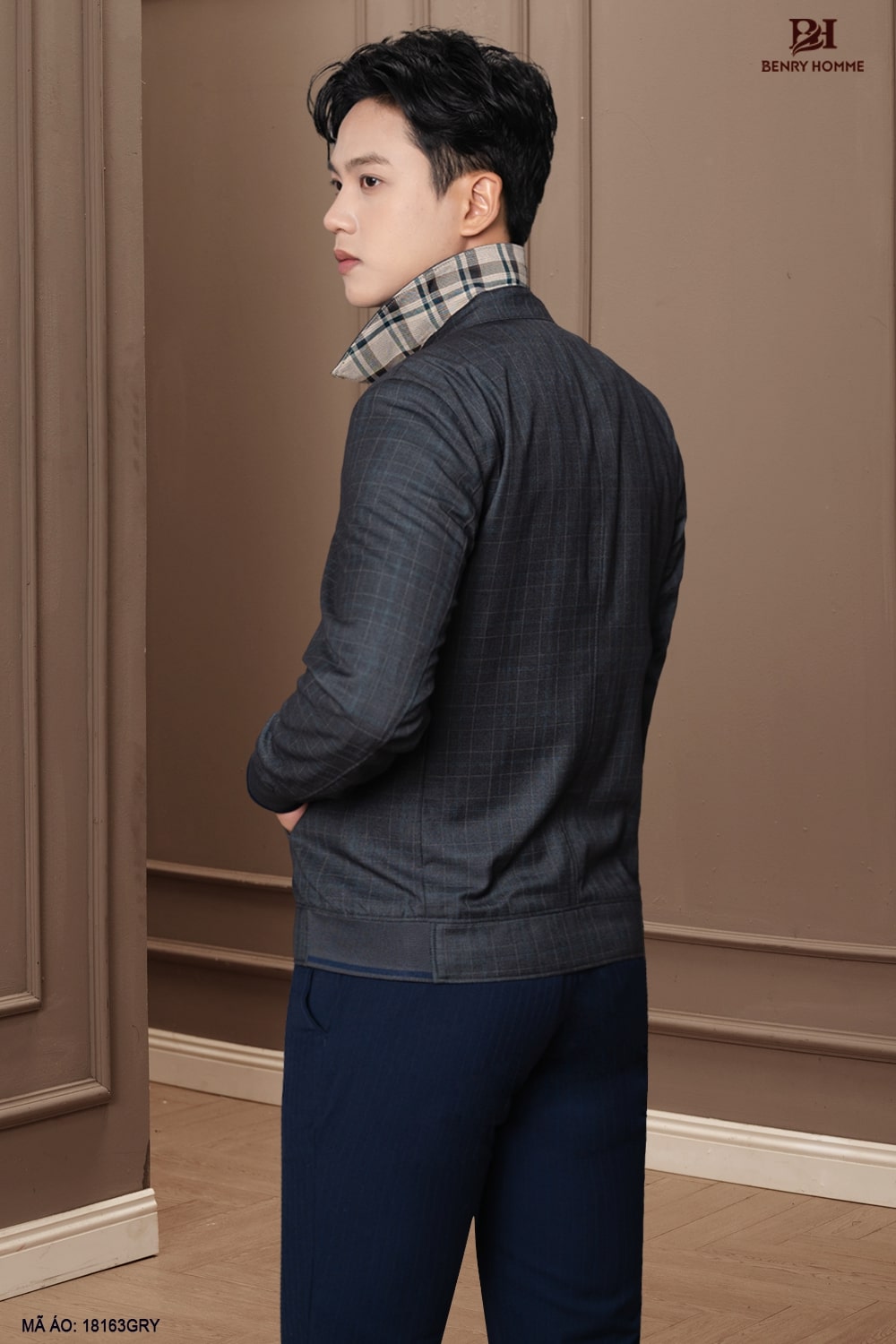Áo khoác nam cao cấp, màu ghi xám sọc caro nhỏ chìm, mã áo JK18163GRY