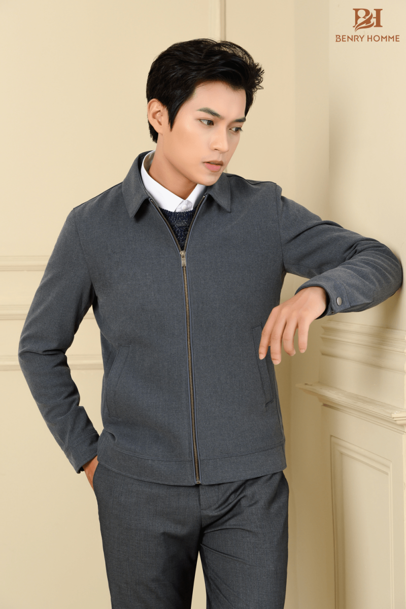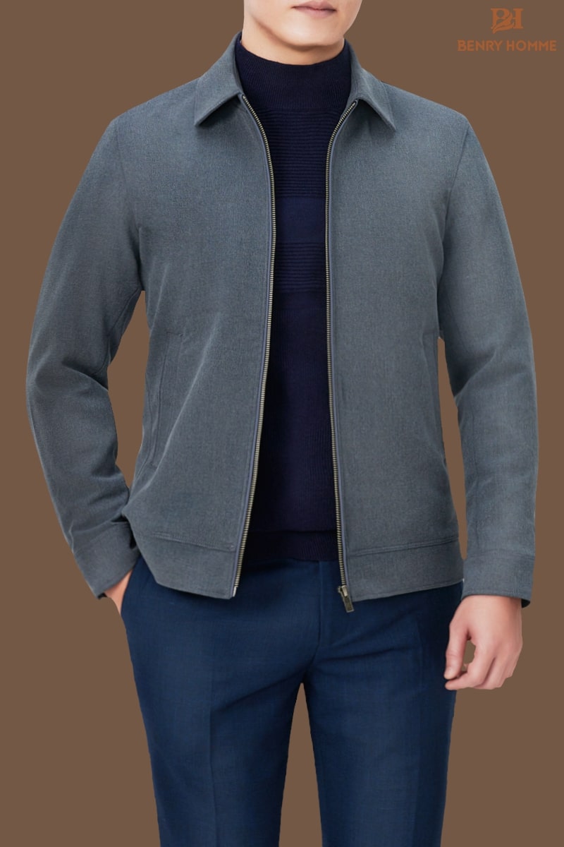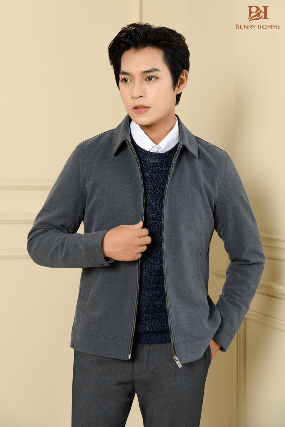Áo khoác nam kẻ Caro màu ghi sáng, mã áo JK18129GR